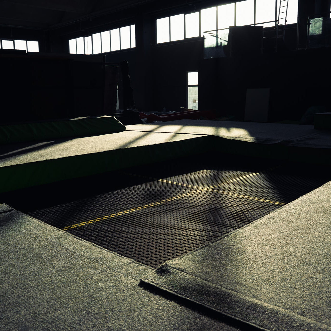 3 postazioni di trampolini elastici di varie metrature per rincorse diverse ed inclinazioni diverse di spinta ed una postazione su piattaforma più alta e fissa. Tutte tali postazioni hanno atterraggio su materasso gonfiabile di tipo Airbag dotato di motori soffiatori che lo rendono sospeso e fluttuante.